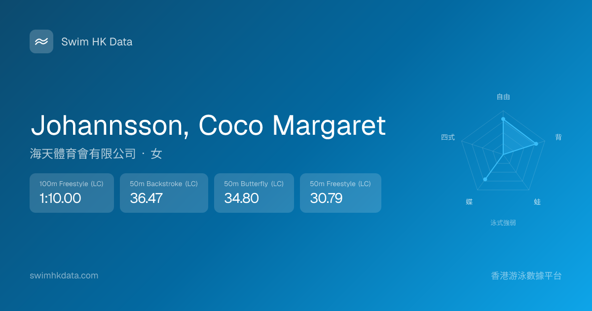 此圖表根據你所有比賽成績計算,顯示你在各泳式的相對強弱,僅供參考。繼續努力,每一次練習都會讓你更快更強!💪