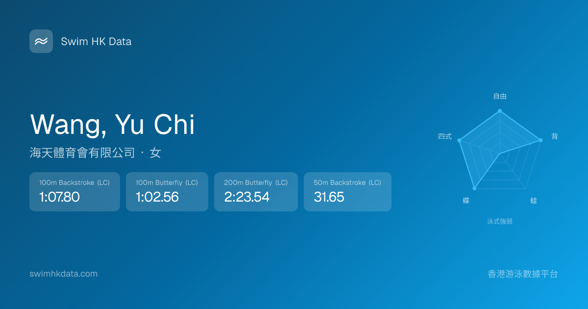 此圖表根據你所有比賽成績計算,顯示你在各泳式的相對強弱,僅供參考。繼續努力,每一次練習都會讓你更快更強!💪