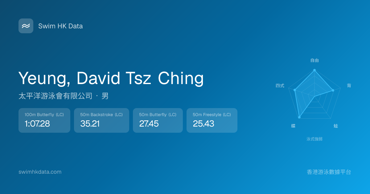 此圖表根據你所有比賽成績計算,顯示你在各泳式的相對強弱,僅供參考。繼續努力,每一次練習都會讓你更快更強!💪