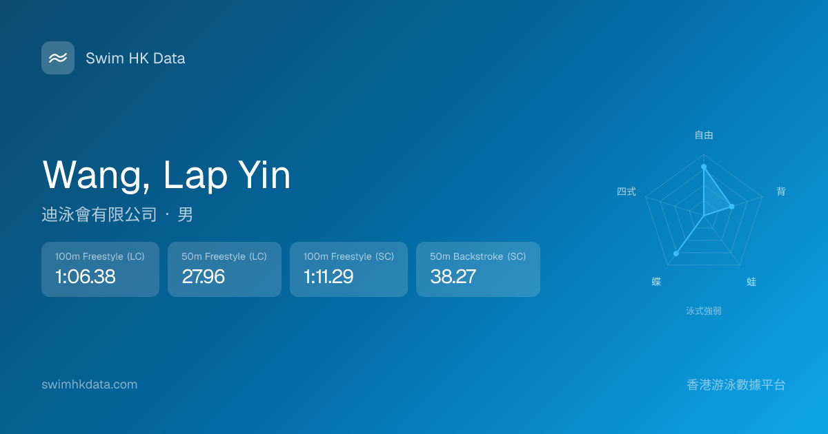 此圖表根據你所有比賽成績計算,顯示你在各泳式的相對強弱,僅供參考。繼續努力,每一次練習都會讓你更快更強!💪