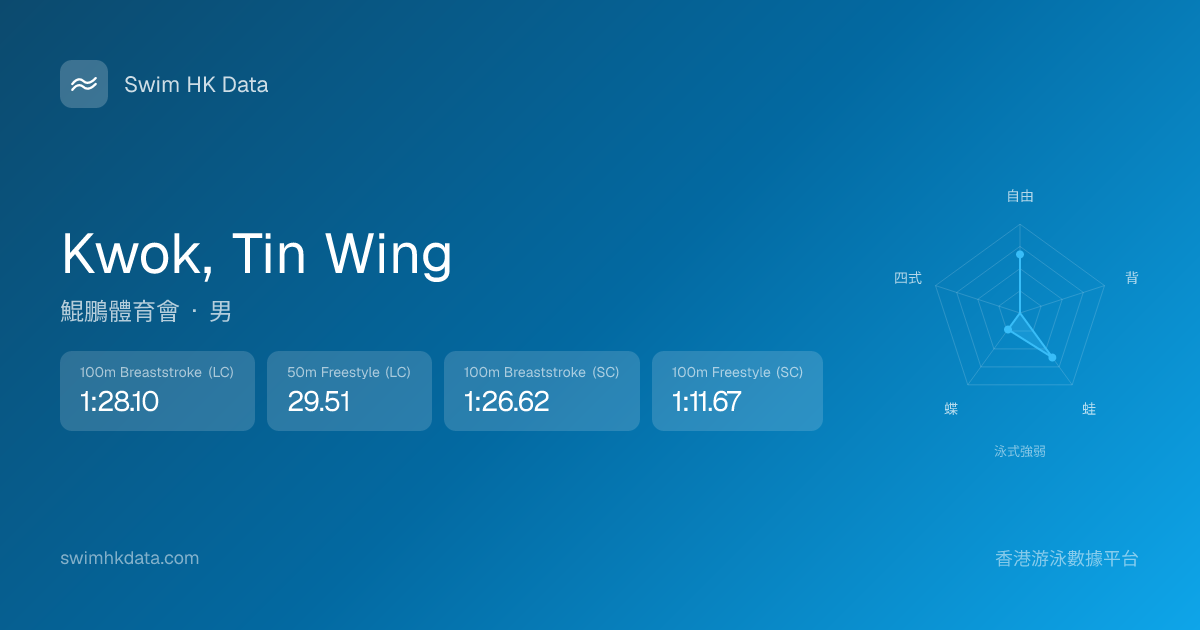 此圖表根據你所有比賽成績計算,顯示你在各泳式的相對強弱,僅供參考。繼續努力,每一次練習都會讓你更快更強!💪