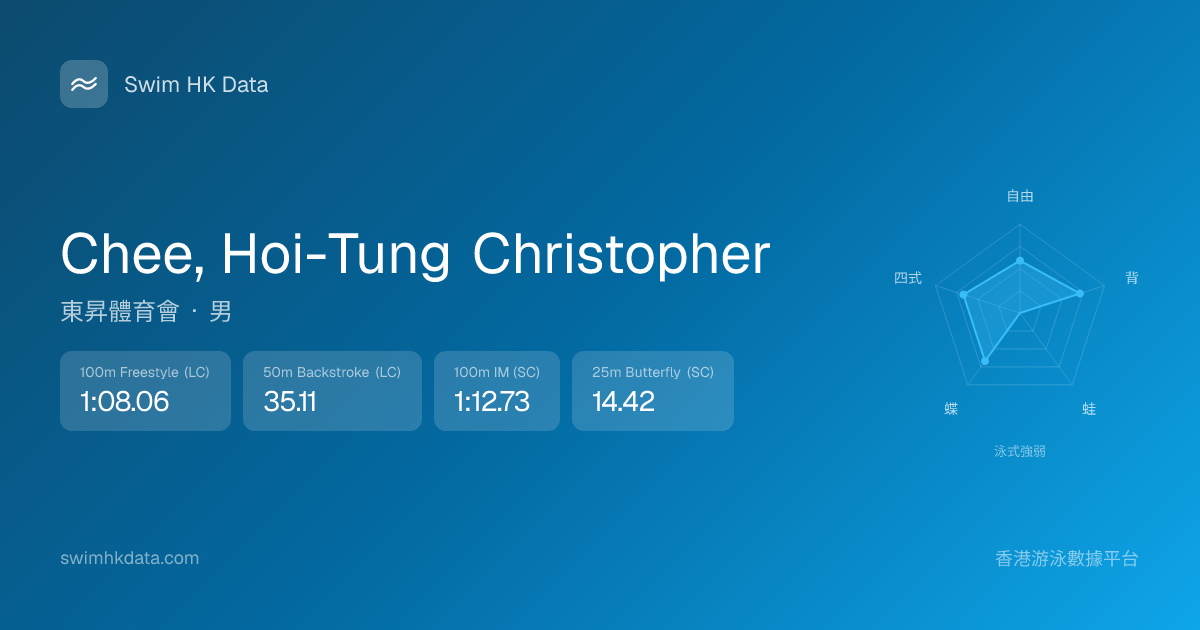 此圖表根據你所有比賽成績計算,顯示你在各泳式的相對強弱,僅供參考。繼續努力,每一次練習都會讓你更快更強!💪