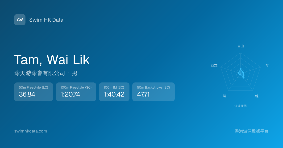 此圖表根據你所有比賽成績計算,顯示你在各泳式的相對強弱,僅供參考。繼續努力,每一次練習都會讓你更快更強!💪