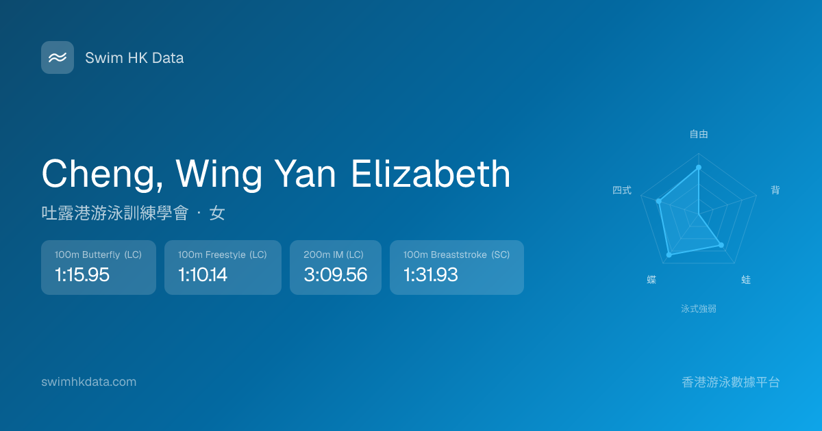此圖表根據你所有比賽成績計算,顯示你在各泳式的相對強弱,僅供參考。繼續努力,每一次練習都會讓你更快更強!💪