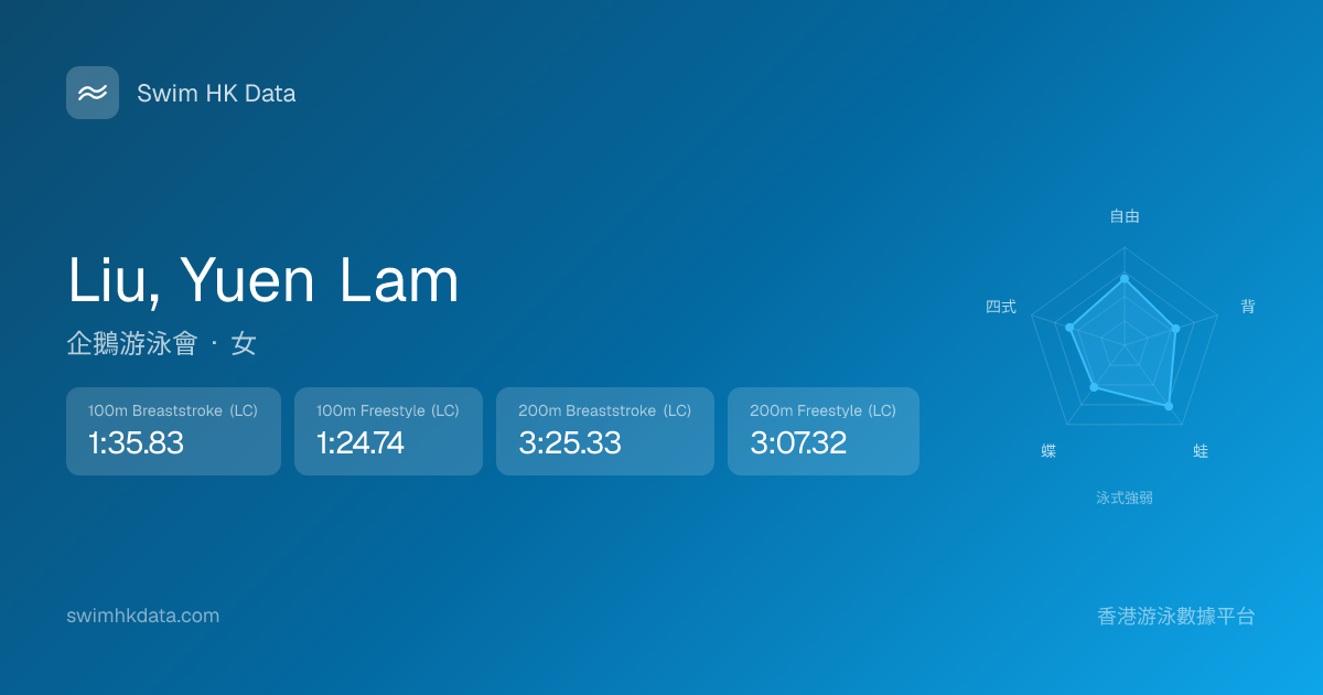 此圖表根據你所有比賽成績計算,顯示你在各泳式的相對強弱,僅供參考。繼續努力,每一次練習都會讓你更快更強!💪