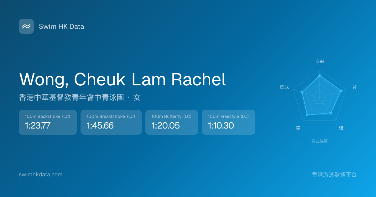 此圖表根據你所有比賽成績計算,顯示你在各泳式的相對強弱,僅供參考。繼續努力,每一次練習都會讓你更快更強!💪