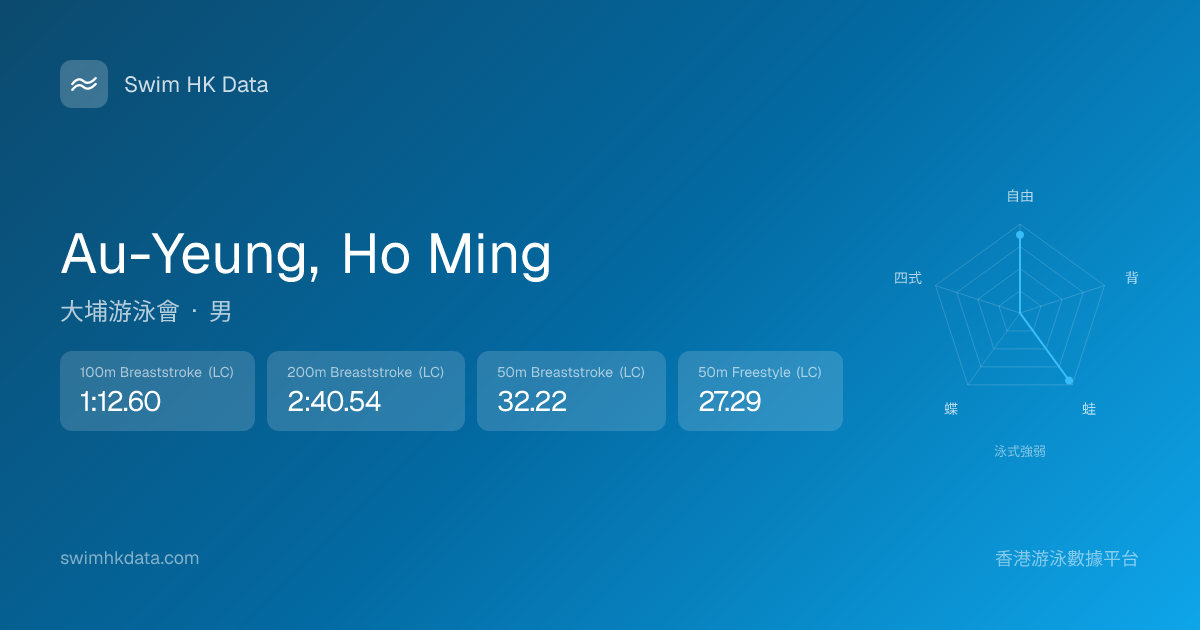 此圖表根據你所有比賽成績計算,顯示你在各泳式的相對強弱,僅供參考。繼續努力,每一次練習都會讓你更快更強!💪