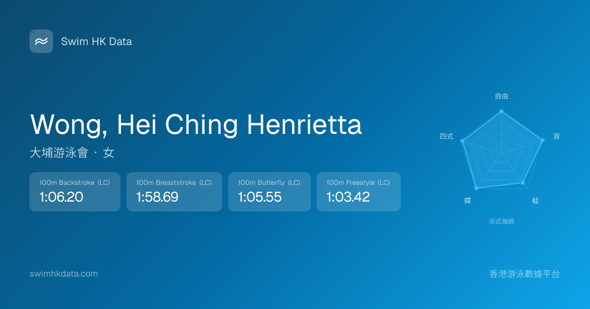 此圖表根據你所有比賽成績計算,顯示你在各泳式的相對強弱,僅供參考。繼續努力,每一次練習都會讓你更快更強!💪