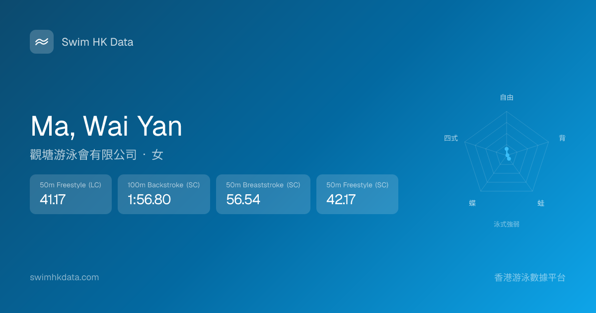 此圖表根據你所有比賽成績計算,顯示你在各泳式的相對強弱,僅供參考。繼續努力,每一次練習都會讓你更快更強!💪
