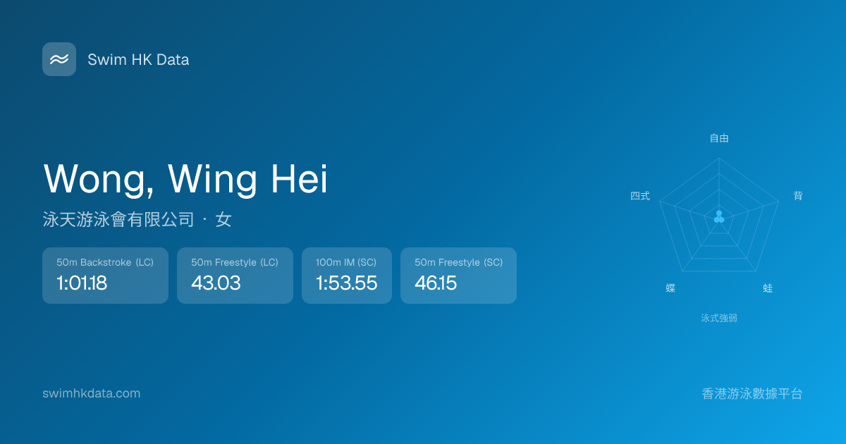 此圖表根據你所有比賽成績計算,顯示你在各泳式的相對強弱,僅供參考。繼續努力,每一次練習都會讓你更快更強!💪