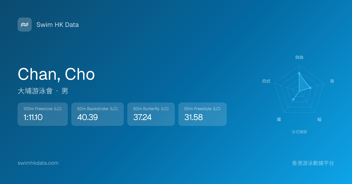 此圖表根據你所有比賽成績計算,顯示你在各泳式的相對強弱,僅供參考。繼續努力,每一次練習都會讓你更快更強!💪