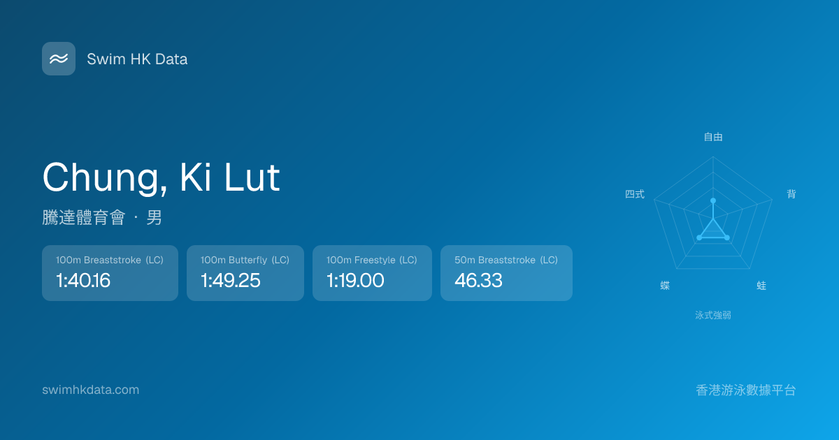 此圖表根據你所有比賽成績計算,顯示你在各泳式的相對強弱,僅供參考。繼續努力,每一次練習都會讓你更快更強!💪