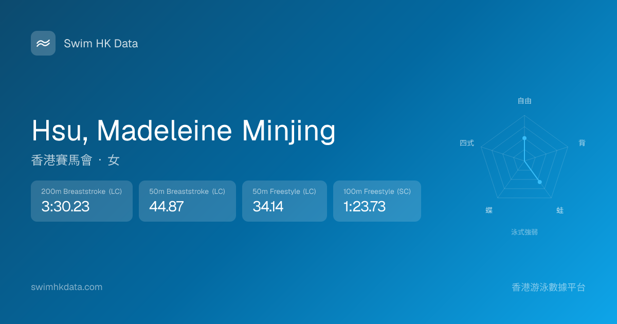 此圖表根據你所有比賽成績計算,顯示你在各泳式的相對強弱,僅供參考。繼續努力,每一次練習都會讓你更快更強!💪