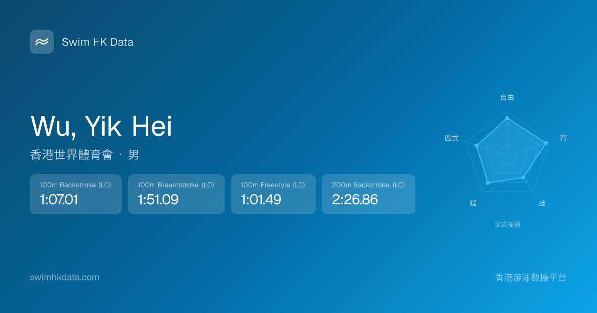 此圖表根據你所有比賽成績計算,顯示你在各泳式的相對強弱,僅供參考。繼續努力,每一次練習都會讓你更快更強!💪