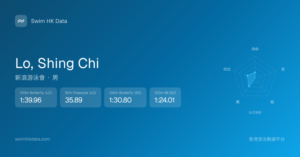 此圖表根據你所有比賽成績計算,顯示你在各泳式的相對強弱,僅供參考。繼續努力,每一次練習都會讓你更快更強!💪