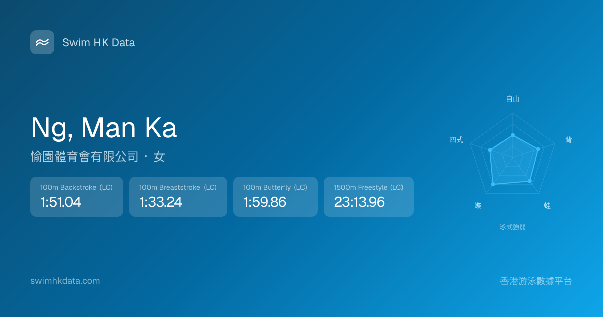 此圖表根據你所有比賽成績計算,顯示你在各泳式的相對強弱,僅供參考。繼續努力,每一次練習都會讓你更快更強!💪