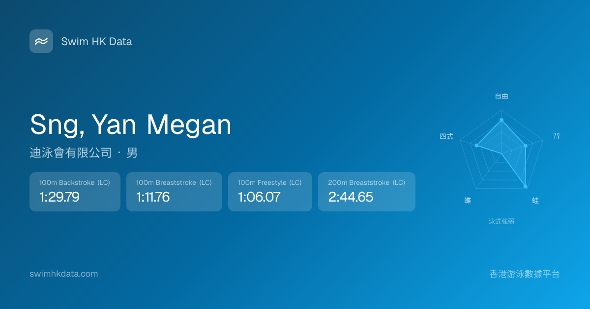 此圖表根據你所有比賽成績計算,顯示你在各泳式的相對強弱,僅供參考。繼續努力,每一次練習都會讓你更快更強!💪