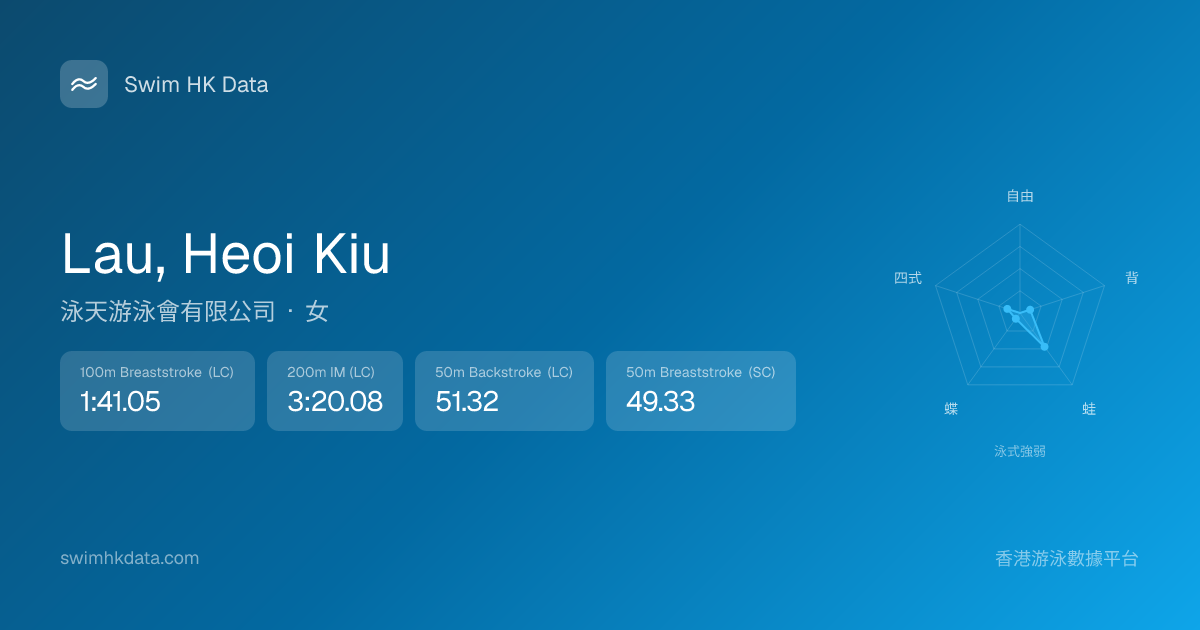 此圖表根據你所有比賽成績計算,顯示你在各泳式的相對強弱,僅供參考。繼續努力,每一次練習都會讓你更快更強!💪