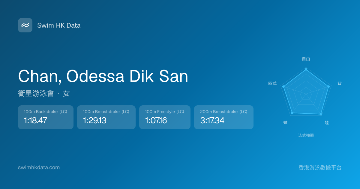 此圖表根據你所有比賽成績計算,顯示你在各泳式的相對強弱,僅供參考。繼續努力,每一次練習都會讓你更快更強!💪