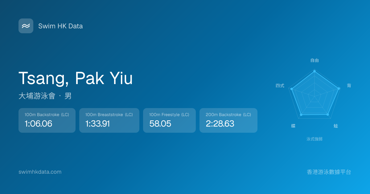 此圖表根據你所有比賽成績計算,顯示你在各泳式的相對強弱,僅供參考。繼續努力,每一次練習都會讓你更快更強!💪