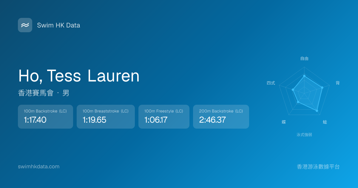 此圖表根據你所有比賽成績計算,顯示你在各泳式的相對強弱,僅供參考。繼續努力,每一次練習都會讓你更快更強!💪