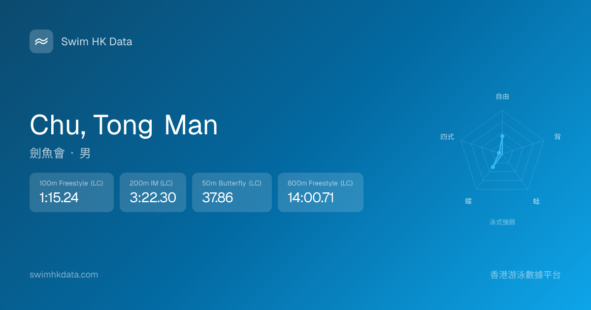 此圖表根據你所有比賽成績計算,顯示你在各泳式的相對強弱,僅供參考。繼續努力,每一次練習都會讓你更快更強!💪