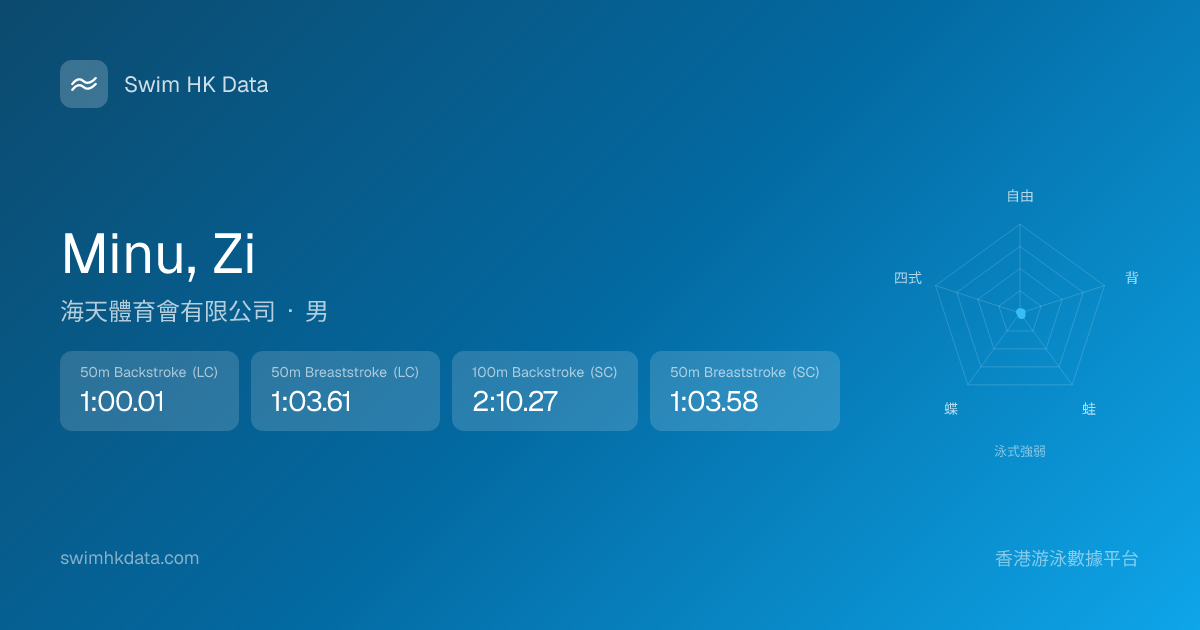 此圖表根據你所有比賽成績計算,顯示你在各泳式的相對強弱,僅供參考。繼續努力,每一次練習都會讓你更快更強!💪