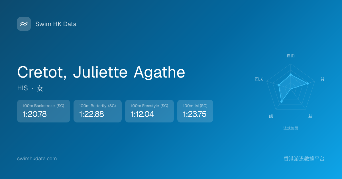 此圖表根據你所有比賽成績計算,顯示你在各泳式的相對強弱,僅供參考。繼續努力,每一次練習都會讓你更快更強!💪
