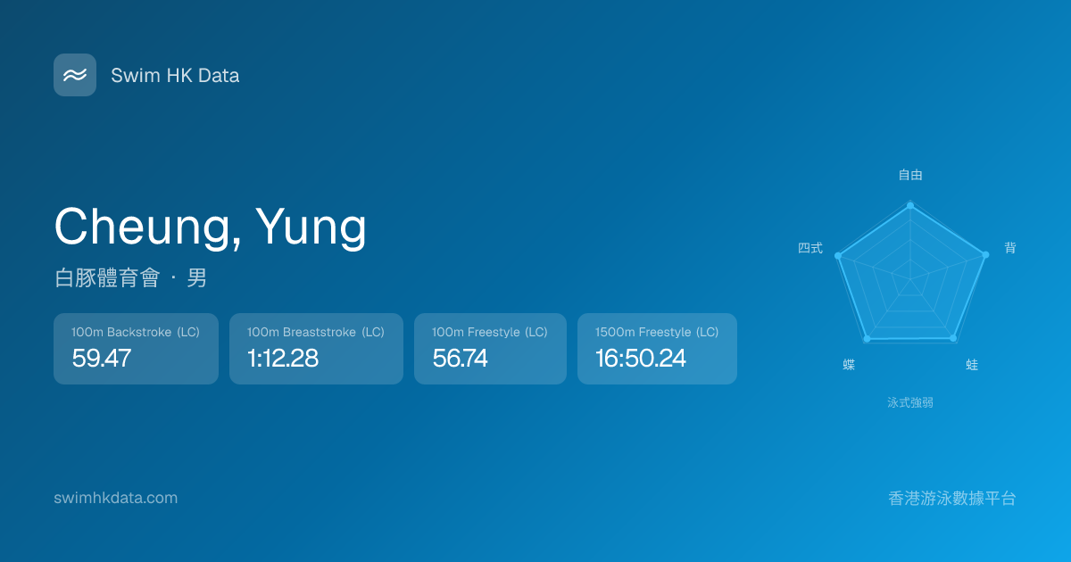 此圖表根據你所有比賽成績計算,顯示你在各泳式的相對強弱,僅供參考。繼續努力,每一次練習都會讓你更快更強!💪