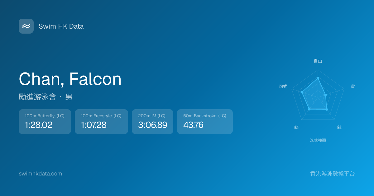 此圖表根據你所有比賽成績計算,顯示你在各泳式的相對強弱,僅供參考。繼續努力,每一次練習都會讓你更快更強!💪