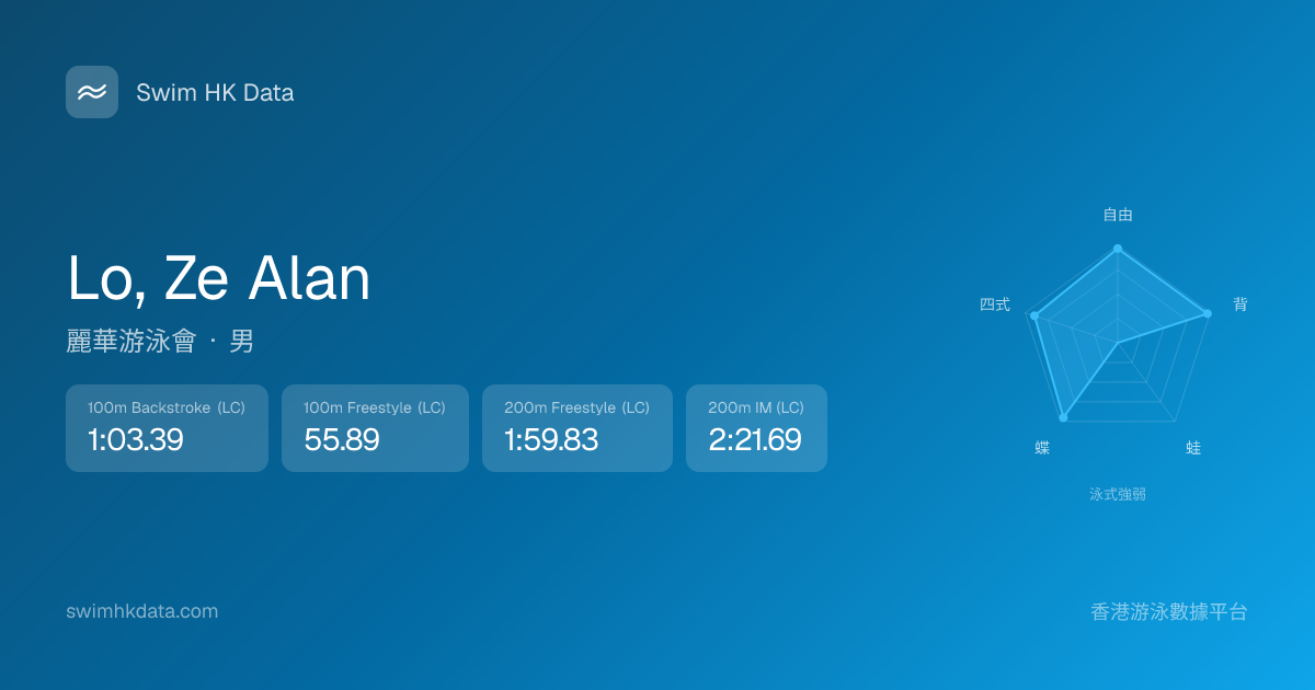 此圖表根據你所有比賽成績計算,顯示你在各泳式的相對強弱,僅供參考。繼續努力,每一次練習都會讓你更快更強!💪