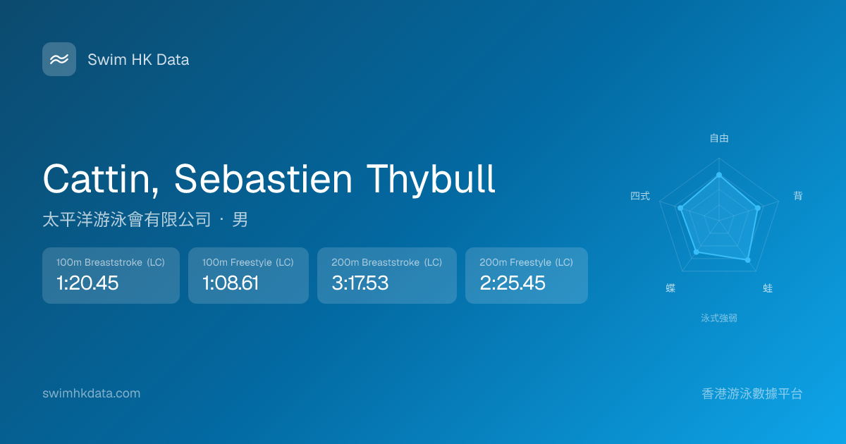 此圖表根據你所有比賽成績計算,顯示你在各泳式的相對強弱,僅供參考。繼續努力,每一次練習都會讓你更快更強!💪