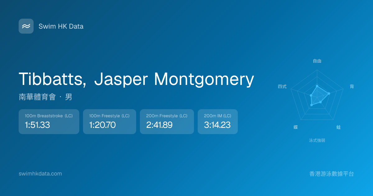 此圖表根據你所有比賽成績計算,顯示你在各泳式的相對強弱,僅供參考。繼續努力,每一次練習都會讓你更快更強!💪