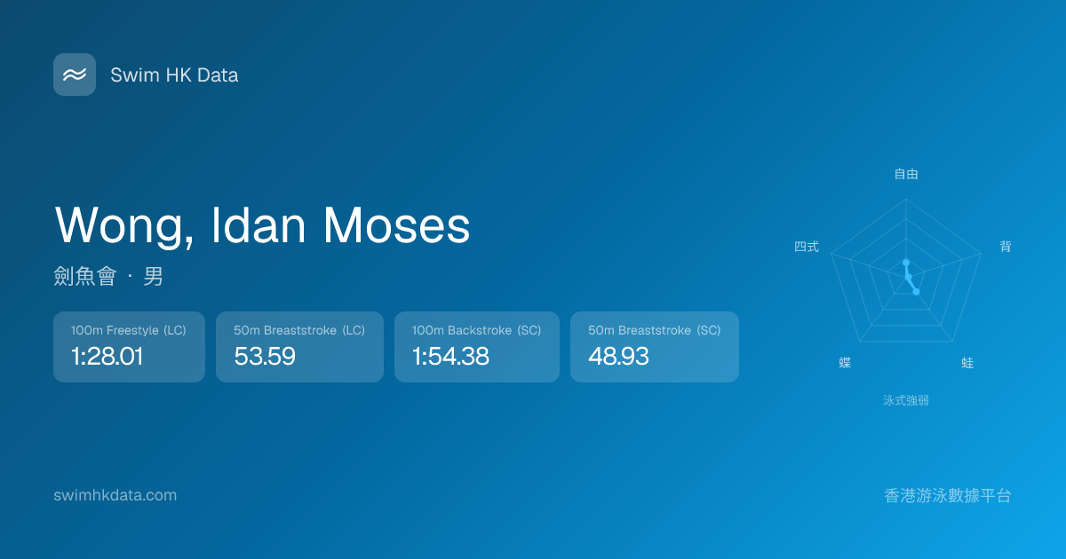 此圖表根據你所有比賽成績計算,顯示你在各泳式的相對強弱,僅供參考。繼續努力,每一次練習都會讓你更快更強!💪