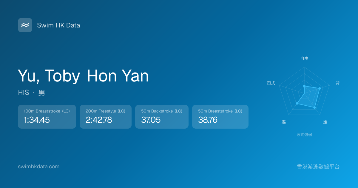 此圖表根據你所有比賽成績計算,顯示你在各泳式的相對強弱,僅供參考。繼續努力,每一次練習都會讓你更快更強!💪