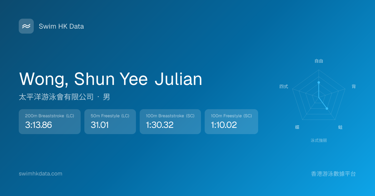 此圖表根據你所有比賽成績計算,顯示你在各泳式的相對強弱,僅供參考。繼續努力,每一次練習都會讓你更快更強!💪