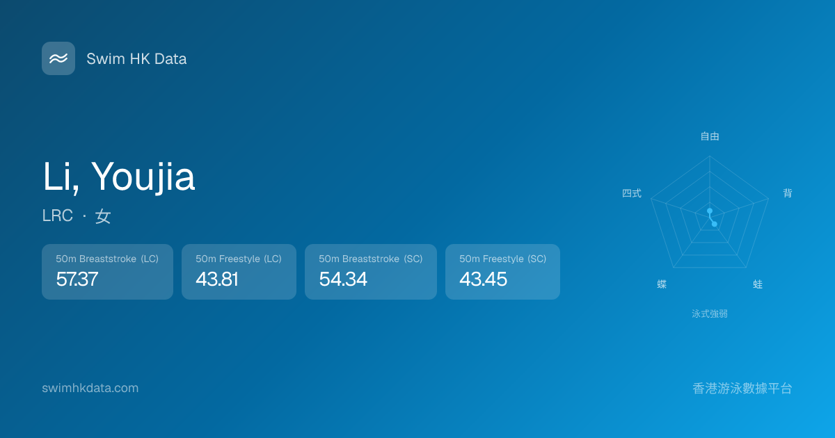 此圖表根據你所有比賽成績計算,顯示你在各泳式的相對強弱,僅供參考。繼續努力,每一次練習都會讓你更快更強!💪