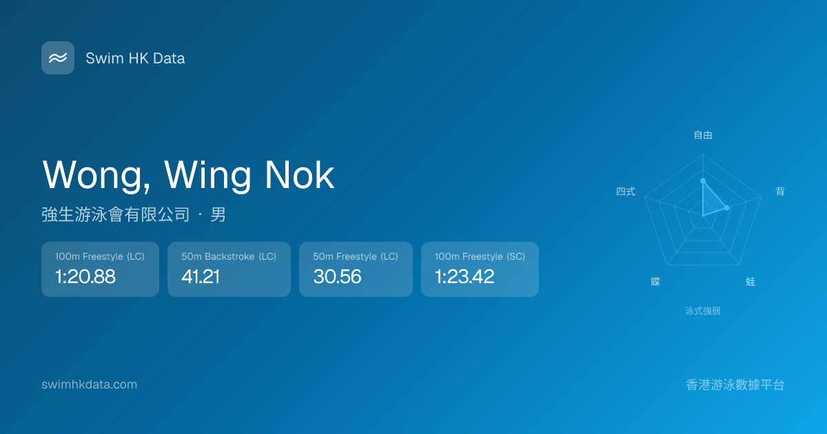 此圖表根據你所有比賽成績計算,顯示你在各泳式的相對強弱,僅供參考。繼續努力,每一次練習都會讓你更快更強!💪