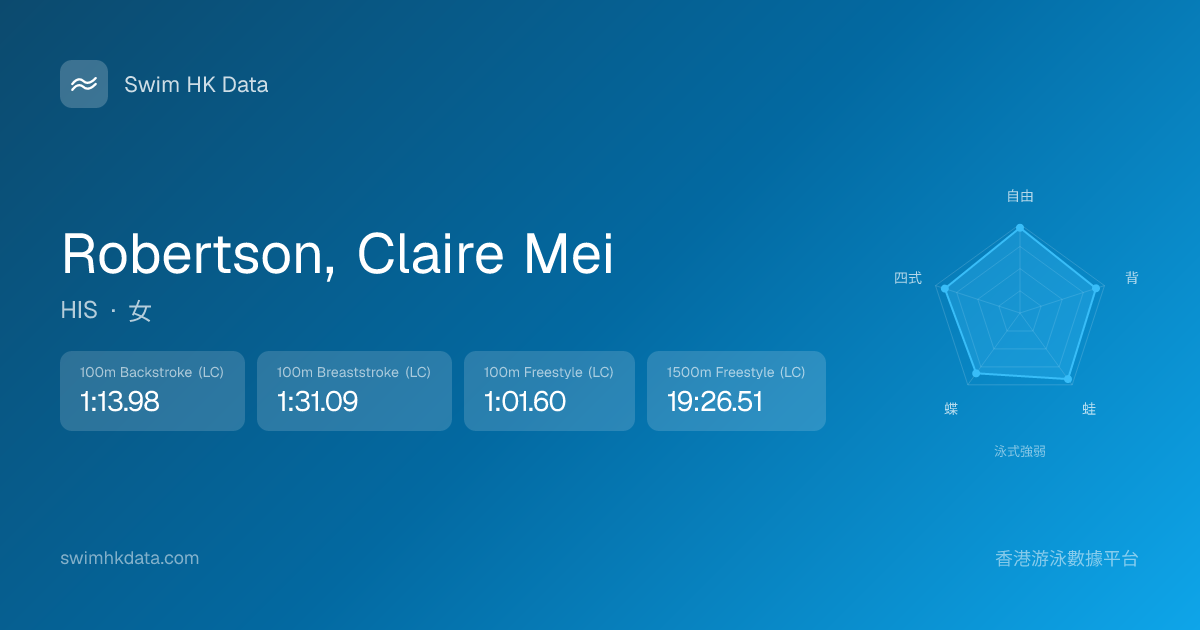 此圖表根據你所有比賽成績計算,顯示你在各泳式的相對強弱,僅供參考。繼續努力,每一次練習都會讓你更快更強!💪