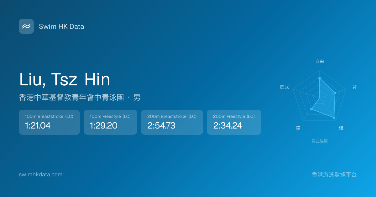 此圖表根據你所有比賽成績計算,顯示你在各泳式的相對強弱,僅供參考。繼續努力,每一次練習都會讓你更快更強!💪