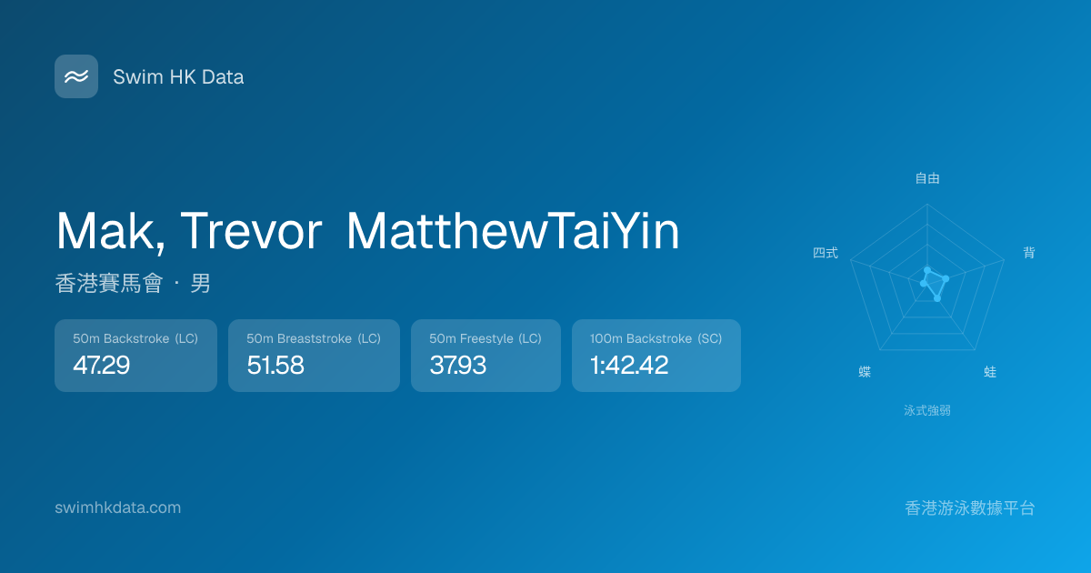 此圖表根據你所有比賽成績計算,顯示你在各泳式的相對強弱,僅供參考。繼續努力,每一次練習都會讓你更快更強!💪