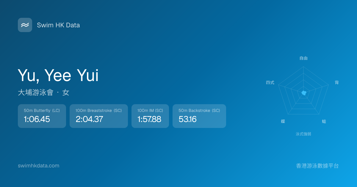 此圖表根據你所有比賽成績計算,顯示你在各泳式的相對強弱,僅供參考。繼續努力,每一次練習都會讓你更快更強!💪