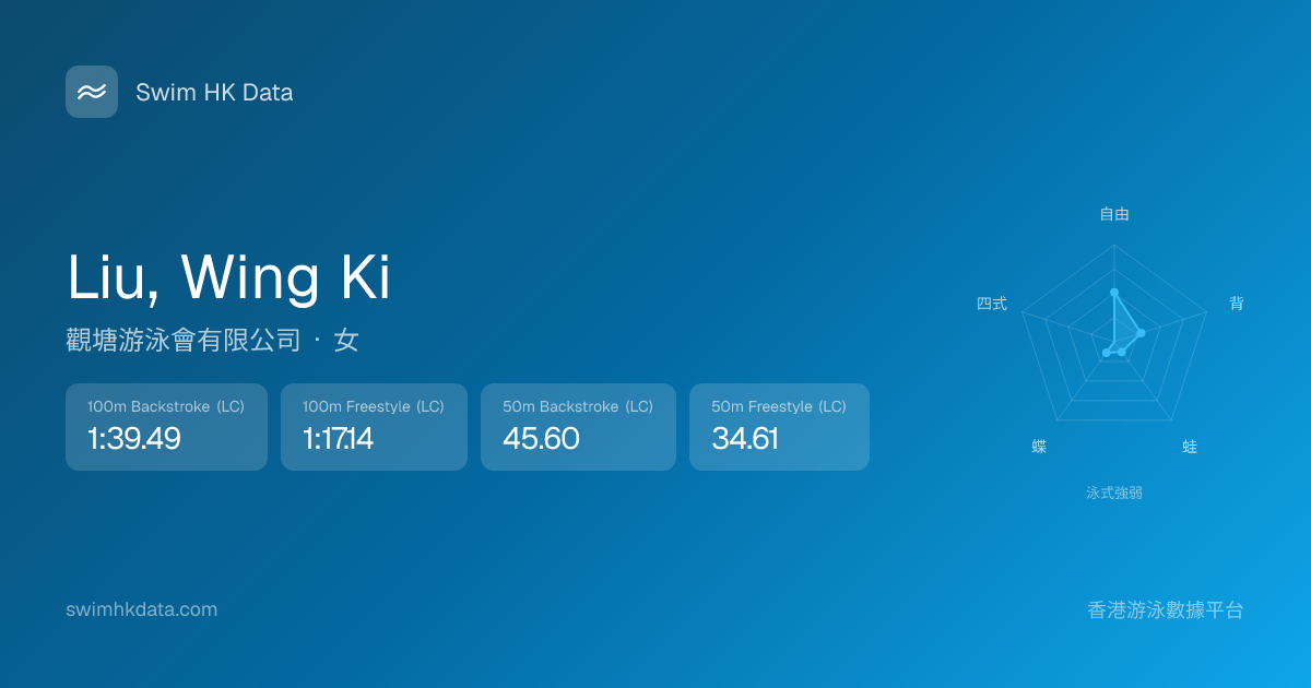 此圖表根據你所有比賽成績計算,顯示你在各泳式的相對強弱,僅供參考。繼續努力,每一次練習都會讓你更快更強!💪