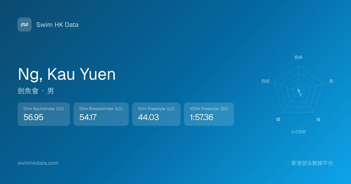 此圖表根據你所有比賽成績計算,顯示你在各泳式的相對強弱,僅供參考。繼續努力,每一次練習都會讓你更快更強!💪