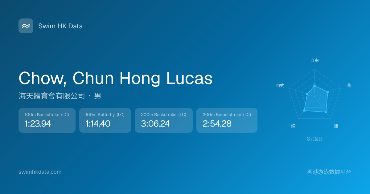 此圖表根據你所有比賽成績計算,顯示你在各泳式的相對強弱,僅供參考。繼續努力,每一次練習都會讓你更快更強!💪