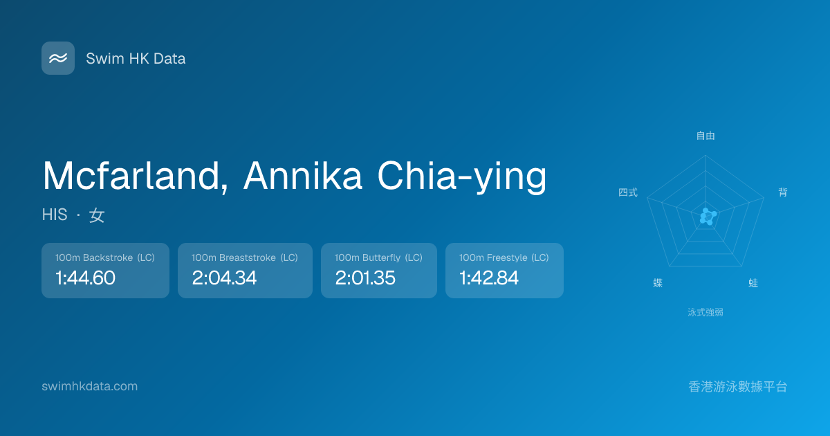 此圖表根據你所有比賽成績計算,顯示你在各泳式的相對強弱,僅供參考。繼續努力,每一次練習都會讓你更快更強!💪