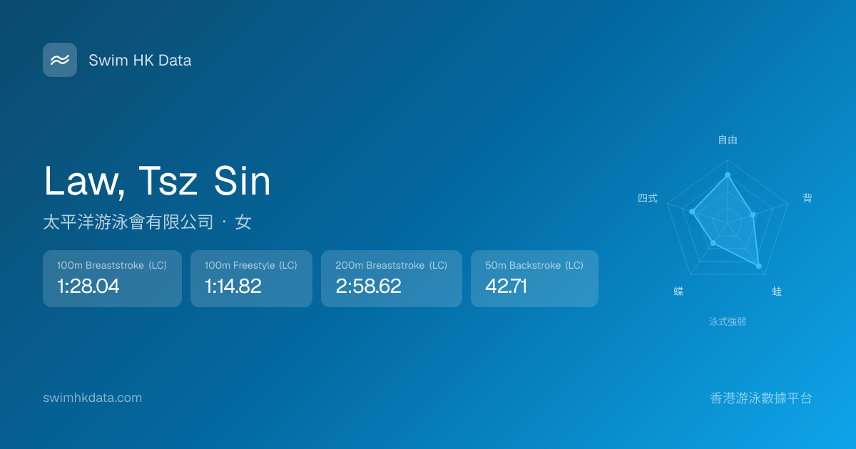 此圖表根據你所有比賽成績計算,顯示你在各泳式的相對強弱,僅供參考。繼續努力,每一次練習都會讓你更快更強!💪