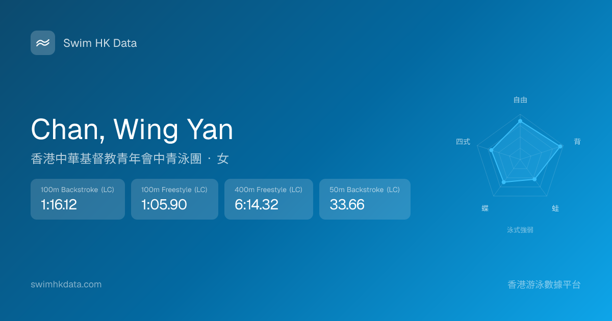 此圖表根據你所有比賽成績計算,顯示你在各泳式的相對強弱,僅供參考。繼續努力,每一次練習都會讓你更快更強!💪