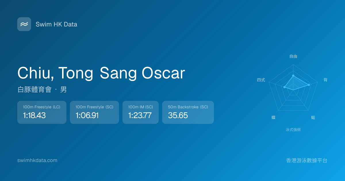 此圖表根據你所有比賽成績計算,顯示你在各泳式的相對強弱,僅供參考。繼續努力,每一次練習都會讓你更快更強!💪