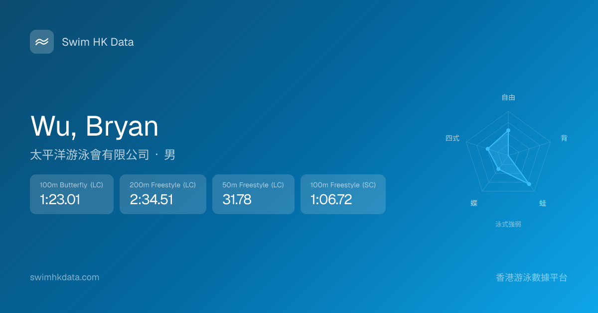 此圖表根據你所有比賽成績計算,顯示你在各泳式的相對強弱,僅供參考。繼續努力,每一次練習都會讓你更快更強!💪